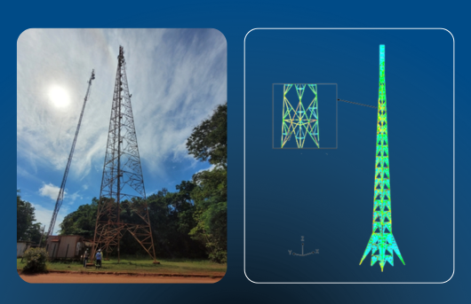 Esse conjunto de competências foi fundamental na verificação de uma torre pertencente a um dos clientes da HRD, uma estrutura autoportante de 100 metros de altura, representando um caso de sucesso da empresa.